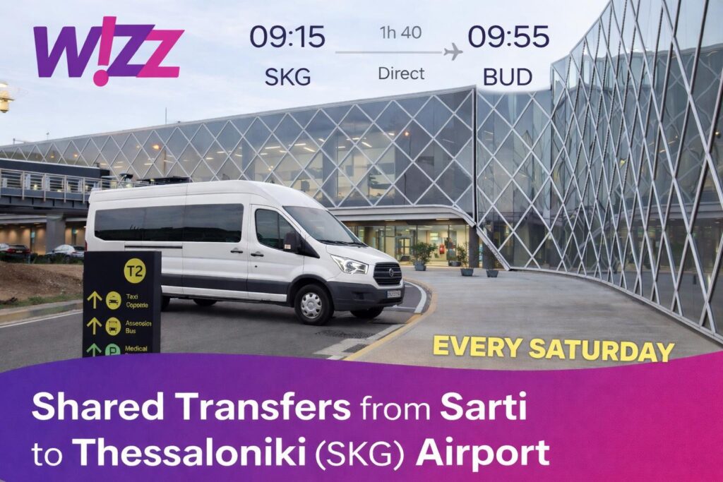 Travel comfortably with our 24/7 private pickup service from Thessaloniki Airport (SKG) to any location in Halkidiki.